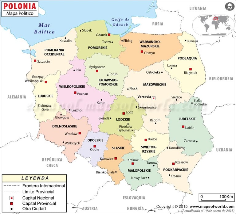 La República de Polonia es un país situado en el centro de Europa que limita al oeste con Alemania, al sur con la República Checa y Eslovaquia, al este con Ucrania y Bielorrusia, y al norte con Lituania y la ciudad rusa de Kaliningrado y el Mar Báltico. Es un país que cuenta con una rica historia y cultura que se remonta a más de mil años. Hoy en día es miembro de la Unión Europea, la OTAN y otras organizaciones internacionales y está ganando mucha popularidad en los últimos años gracias a sus pintorescas ciudades y pueblos de cuento.