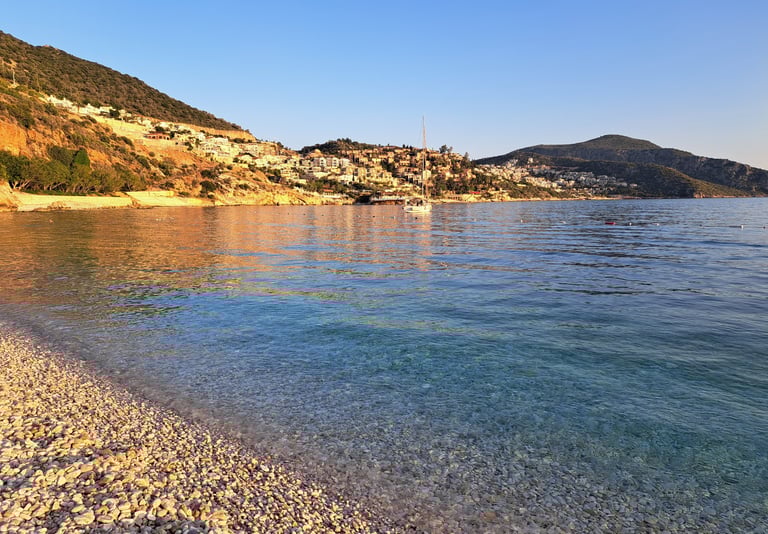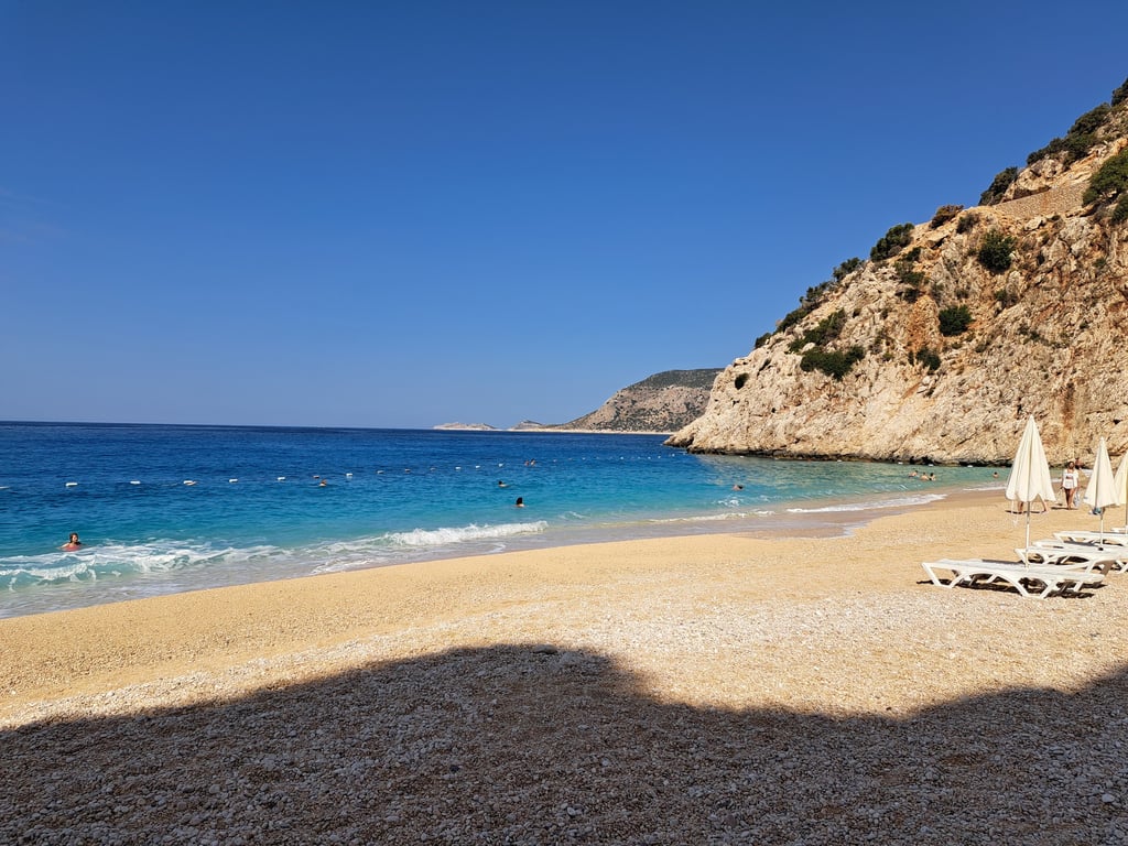 Büyükçakıl Plajı: una playa preciosa a la que se puede llegar andando desde Kaş. El camino hasta allí es una maravilla, con vistas espectaculares del mar. Al llegar, encontraréis una cala tranquila con aguas cristalinas, ideal para relajarse y darse un baño en un entorno natural único.