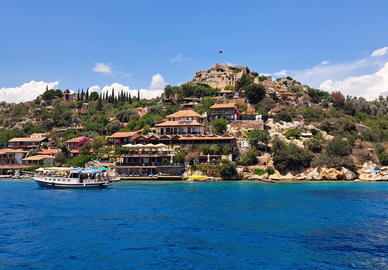 El pueblo de Simena (Kaleköy): solo es accesible en barco. Este encantador pueblo tiene un castillo en la cima que ofrece vistas panorámicas impresionantes de toda la zona.