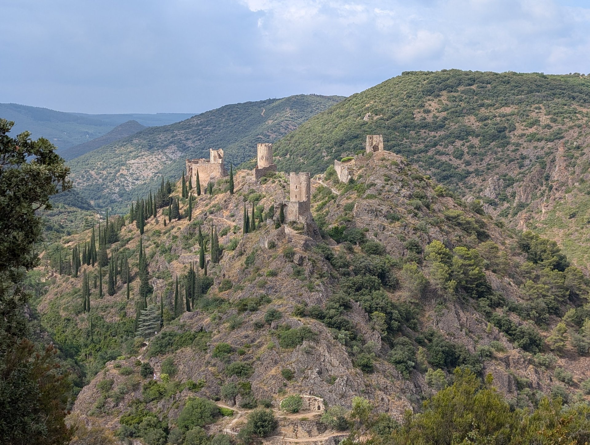 Castillos de Lastours, cuatro fortalezas cátaras en lo alto de unas colinas, con rutas de senderismo y vistas espectaculares.