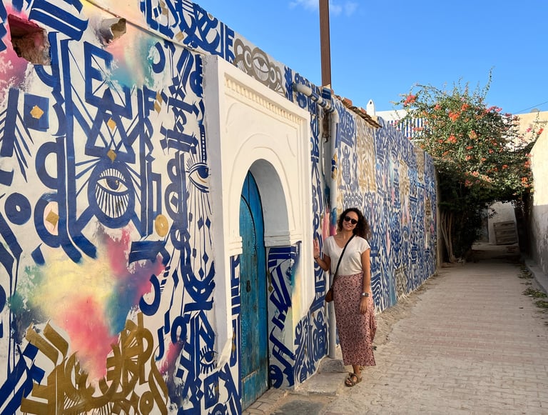 En el pueblo de Erriadh se encuentra Djerbahood, un museo de arte urbano al aire libre donde más de 150 artistas han dejado su huella en las paredes de la ciudad, creando un contraste fascinante entre tradición y modernidad. Pasear por sus calles es descubrir una Djerba diferente y llena de color.