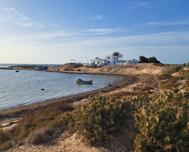 Durante la Edad Media, la isla fue un refugio de corsarios y comerciantes. En aquella época los piratas convirtieron la isla en una base desde la cual atacaban embarcaciones europeas. Más tarde, los otomanos consolidaron su presencia, dejando como legado fortalezas como el Borj El Kebir. Hoy en día, sigue conservando su identidad única, con una mezcla fascinante de cultura bereber, árabe y judía, muy peculiar e inesperada, hasta el punto de sentir que estáis en otro país. Sus calles encaladas, zocos vibrantes y playas de aguas cristalinas la convierten en un destino imperdible para cualquier viajero en busca de historia, cultura y paisajes idílicos.