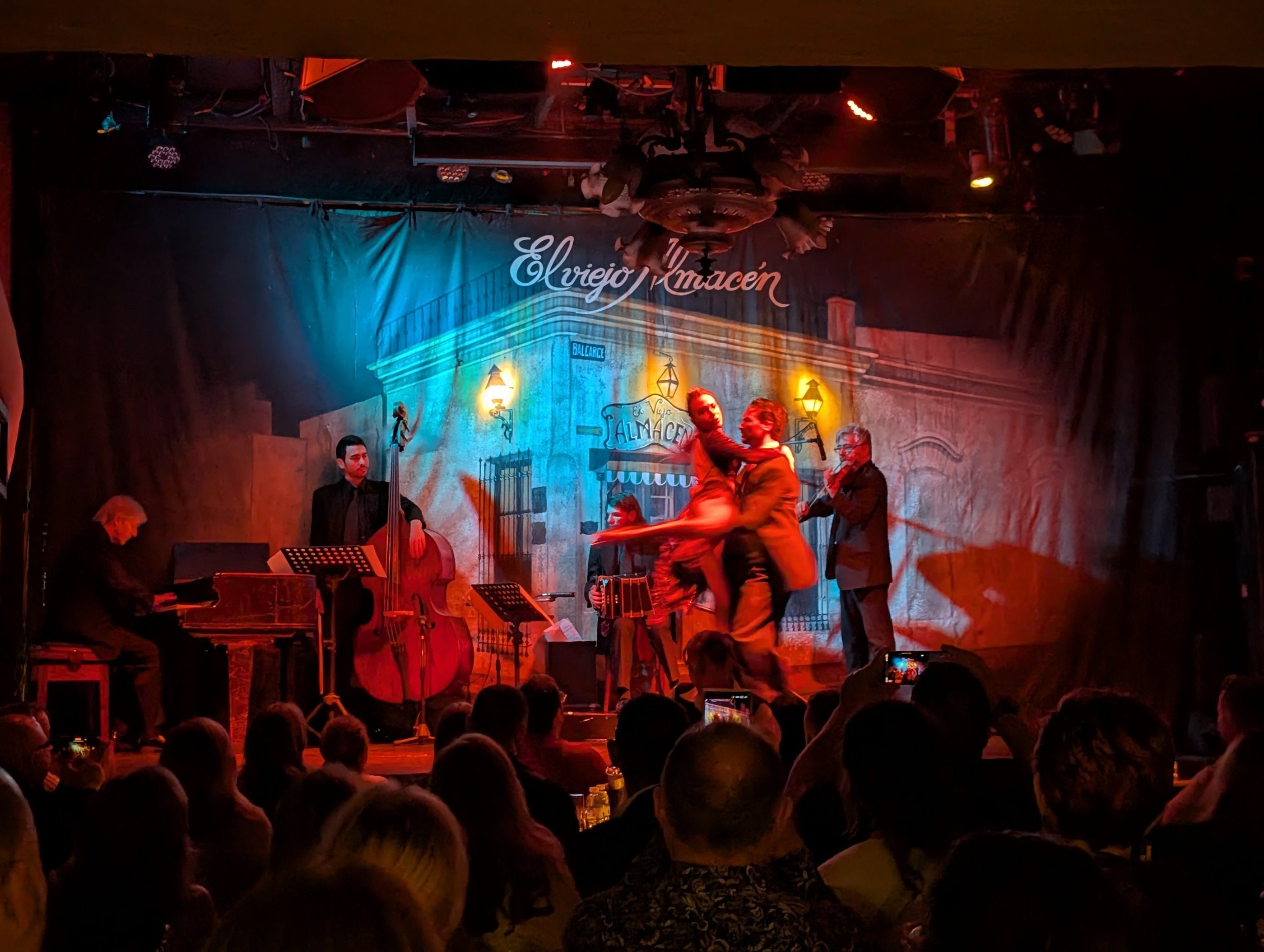 Antes de empezar a hablaros de la cena y el espectáculo, tenéis que saber que El Viejo Almacén no es solo un restaurante o una tanguería, es una verdadera institución cultural en Buenos Aires. Ubicado en una esquina histórica del barrio de San Telmo, el edificio donde se encuentra data aproximadamente del año 1769, y en sus más de dos siglos ha sido de todo: almacén colonial, hospital británico, aduana, y desde 1969, casa del tango gracias al gran Edmundo Rivero, quien lo convirtió en el escenario emblemático que es hoy.