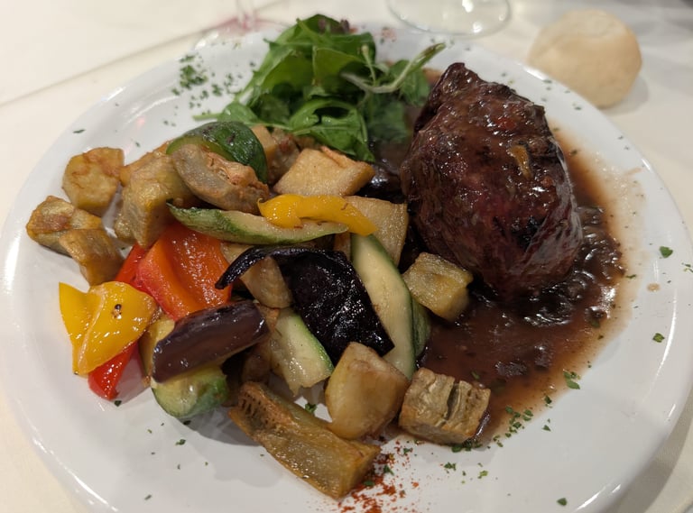 Imaginad una velada en el corazón de San Telmo, uno de los barrios más auténticos y con más magia de Buenos Aires. Adoquines, bares antiguos, murales, música en la calle… Y en medio de todo eso, El Viejo Almacén, que parece sacado de otra época. Allí nos esperaba una cena de tres pases que nos encantó, acompañada de vinos argentinos exquisitos y un ambiente que ya prometía una gran noche.