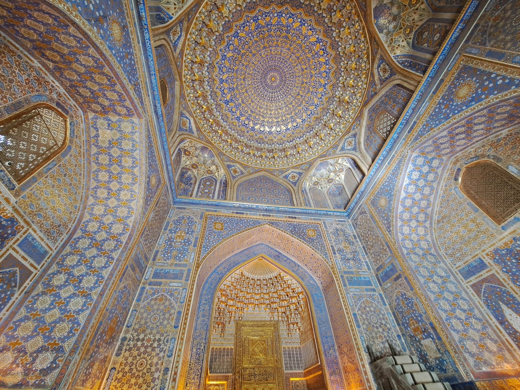 Continuando por el Bazar Siyob y tras cruzar un puente peatonal, se accede a esta fotogénica mezquita, levantada en honor al primer presidente de Uzbekistán, Islam Karimov (1990-2016), y en la que guarda sepultura su cuerpo. Se percibe que es un lugar importante de peregrinación nacional, ya que se crea un ambiente casi místico que os recomendamos experimentar. Cada diez minutos un imán (el líder musulmán) reza por la muerte del primer presidente. Además, es una de las mezquitas más hermosas, sus techos están decorados con preciosas pinturas y las vistas desde el balcón hacia la ciudad vieja de Samarcanda son de postal. ¡La entrada es gratuita!