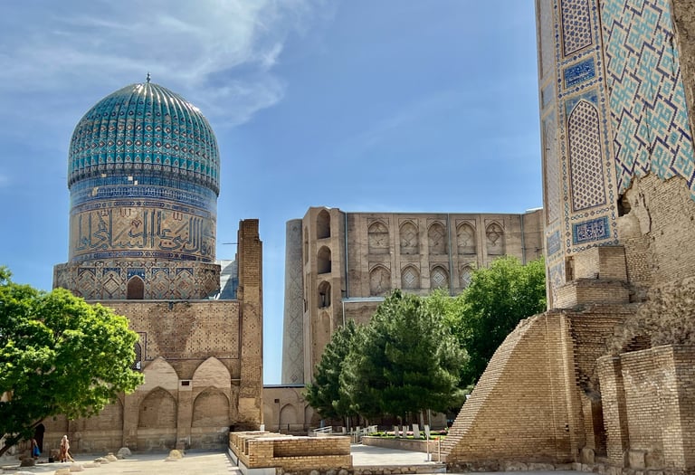 Amir Timur (el famoso Tamerlán, en español), gran conquistador turcomongol y padre de lo que hoy en día conocemos como Uzbekistán, mandó construir esta gigantesca mezquita, que llegó a ser una de las más grandes del mundo en su época. Se la dedicó a su última mujer, Bibi Khanym, y merece mucho la pena visitarla. Se puede acceder a través de la avenida que une el Registán con el famoso Bazar de Siyob, el principal mercado de la ciudad. Recomendamos ir temprano por la mañana para disfrutar del lugar con poca gente. Pese a estar ultra-reconstruida, sigue siendo muy imponente y suele estar mucho más tranquila que el Registán.