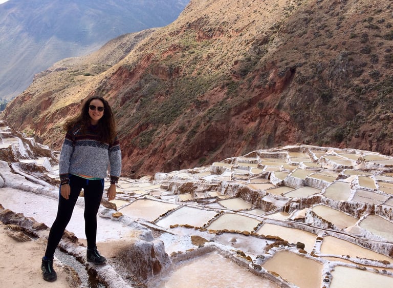 A pocos kilómetros de Moray, las salineras de Maras son otro de los paisajes icónicos del valle. Aquí, miles de pequeñas pozas en las laderas de la montaña forman una red brillante de piscinas salinas que producen sal rosada de alta calidad. Este método de extracción se remonta a épocas preincaicas, y los habitantes locales aún trabajan las salineras con técnicas tradicionales. Lo mejor de todo es que podréis caminar a través de un camino que permite observar todo el proceso de recolección de sal y disfrutar de un paisaje que parece de otro mundo, con las pozas cambiando de color con el sol y el ángulo de la luz. Este es uno de los lugares que más ganas teníamos de visitar y no nos defraudó.